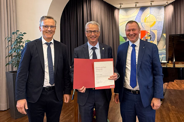 „Die Auszeichnung erfüllt mich mit tiefem Dank und ist eine Wertschätzung für viele gemeinsame Jahre. Unser Leitsatz „In unserer Mitte – Der Mensch“ war und ist unsere zentrale Motivation. Er erinnert uns daran, dass unser Tun den Menschen in den Mittelpunkt stellt, mit seinen Bedürfnissen, Hoffnungen und seiner Würde“, bedankte sich Thomas Häseli. Er habe in all den Jahren unzählige inspirierende Erfahrungen sammeln können und lernen dürfen, wie kraftvoll ein gemeinsames Netzwerk sein kann, das auf Respekt und gegenseitiger Unterstützung basiere. Das Ehrenzeichen sei für ihn nicht nur Würdigung für den bisherigen Weg, sondern Ansporn dafür den Weg weiterhin mit Leidenschaft zu gehen. „Ich freue mich, Teil dieser Gemeinschaft sein zu dürfen.“
