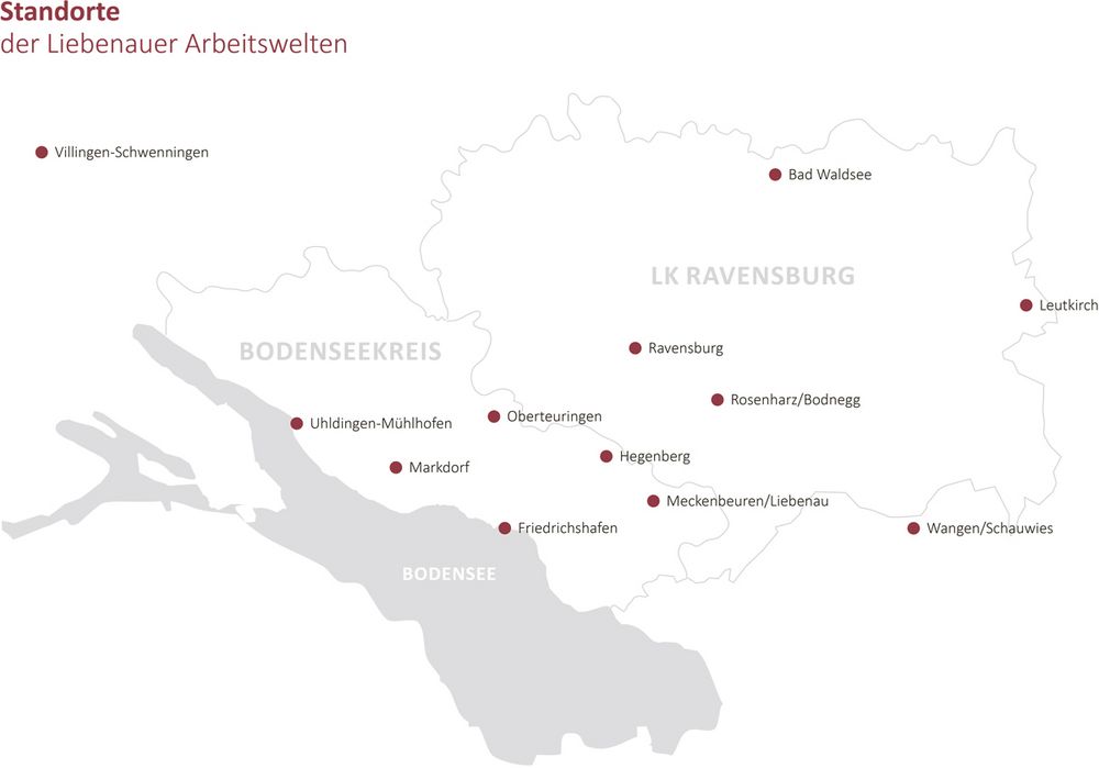 Seit 2011 bieten die Liebenauer Arbeitswelten auch in Villingen-Schwenningen Arbeitsmöglichkeiten für Menschen mit Behinderungen. Das Besondere an „Arbeit inklusive“: Alle Arbeitsplätze sind in Unternehmen am allgemeinen Arbeitsmarkt, vom Getränkemarkt über die Tafel bis hin zum Hausmeisterdienst. In momentan fünf Gemeinden erhalten Menschen mit höherem Unterstützungsbedarf eine verlässliche Tagesstruktur in so genannten Bildungs-, Begegnungs- und Förderstätten.