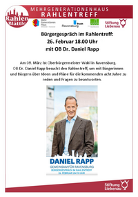 Bürgergespräch mit OB Dr. Daniel Rapp Donnerstag 25. Februar um 18.00 Uhr im Rahlentreff