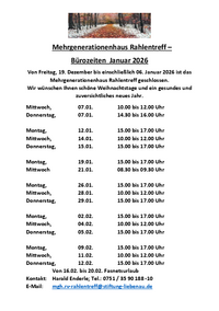 Rahlenblättle Januar 2026 der monatliche Newsletter des Rahlentreffs - Politischer Vortrag mit 1. BM Dr. Honikel - Günther