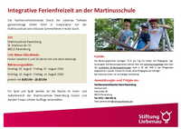In den ersten beiden Wochen der Sommerferien findet die inklusive Ferienfreizeit des Familienunterstützenden Dienstes RV in der Martinusschule Ravensburg statt. Sie ist für Kinder mit und ohne Beeinträchtigungen von 5 bis 10 Jahren.